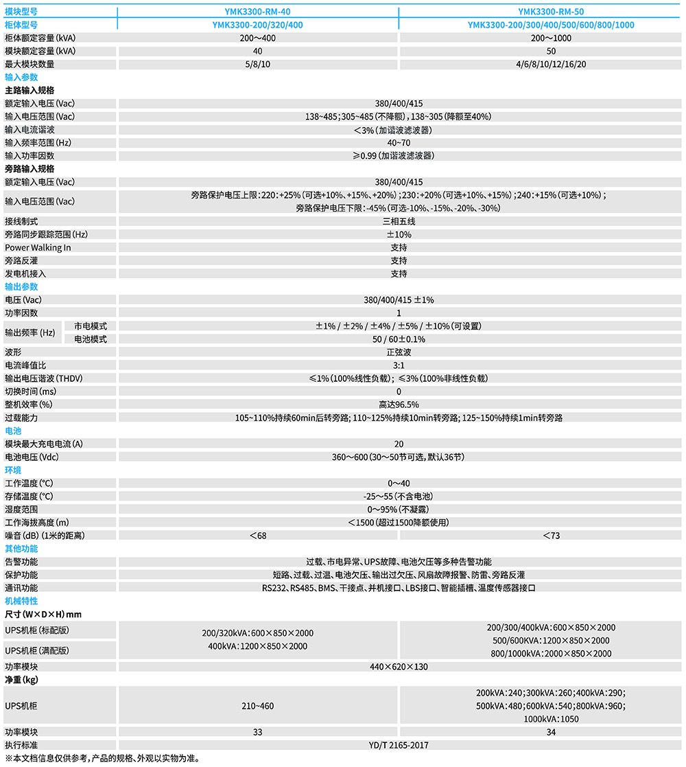 所有單元均采用模塊化設計,包含功率模塊、旁路模塊、監控模塊、配電模塊(限單柜),功率模塊為3U,旁路模塊為3U,監控模塊1U,配電模塊11U,適配19英寸標準機柜